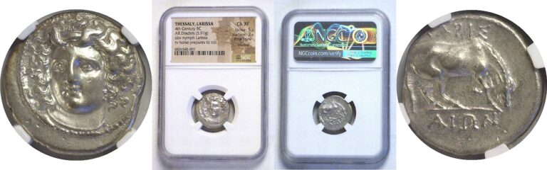 4th Century BC. GREEK. Thessaly. Silver Drachm. NGC. Ch XF quantity