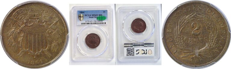 1864 Small Motto. Two Cent Piece – PCGS MS-65+ CAC