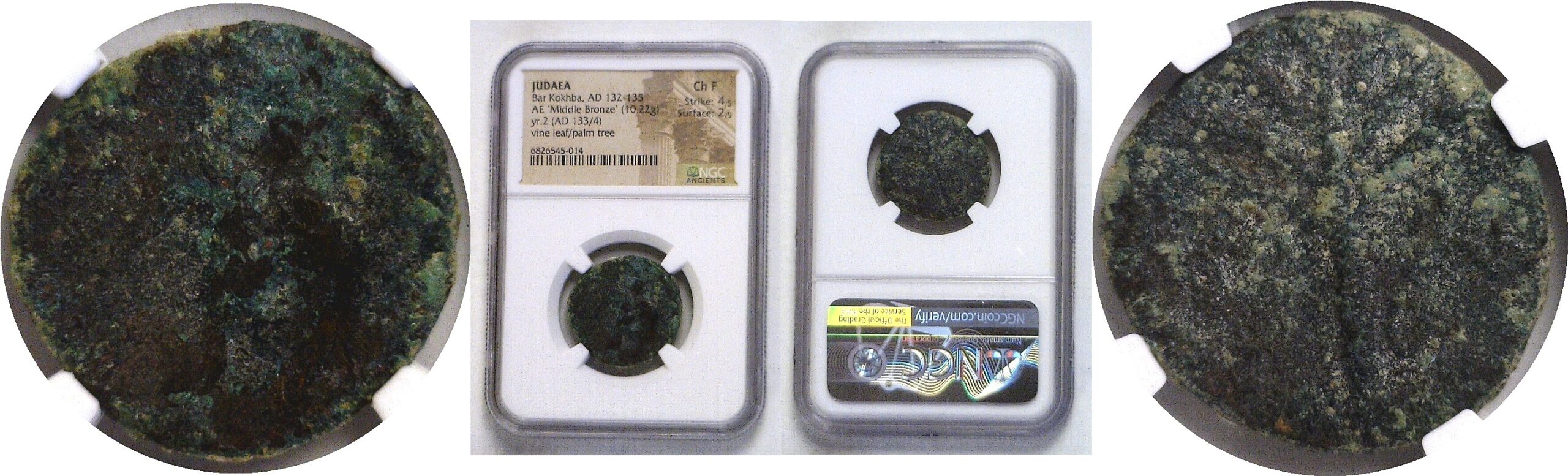 NGC Choice Fine. Year 2 (AD 133/4). Vine leaf and palm tree.