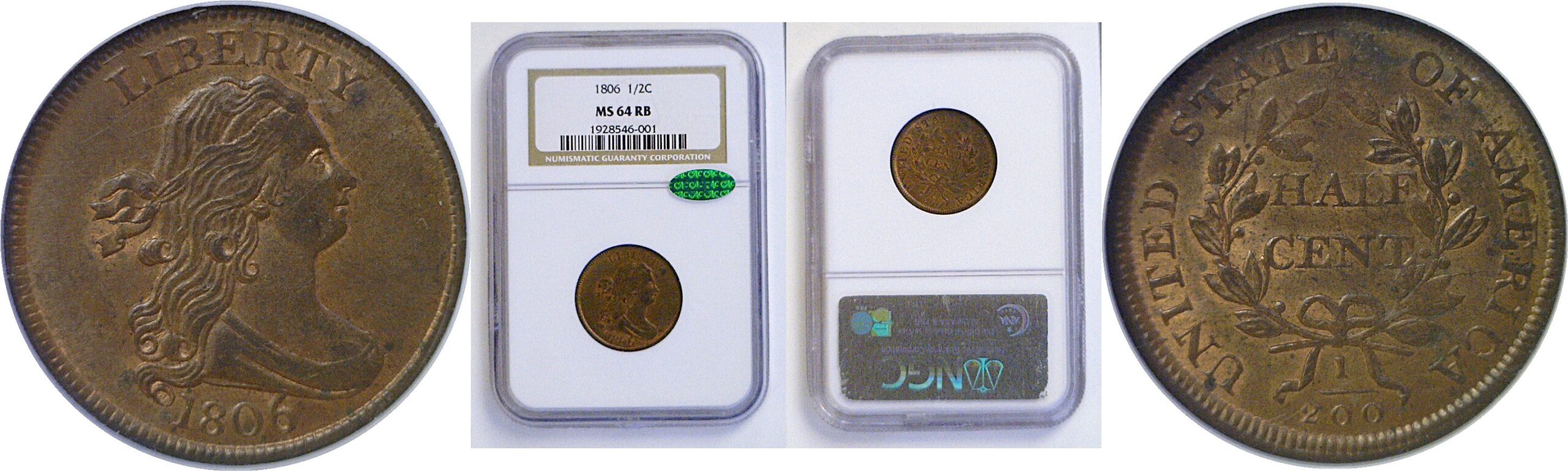 CAC. Large 6, Stems. Lovely original mint red luster blending with soft brown. The surfaces are particularly choice with no significant marks. Tied for the finest graded regardless of color designation with the only ‘Red’ MS-64 selling for $46k back in 2014.