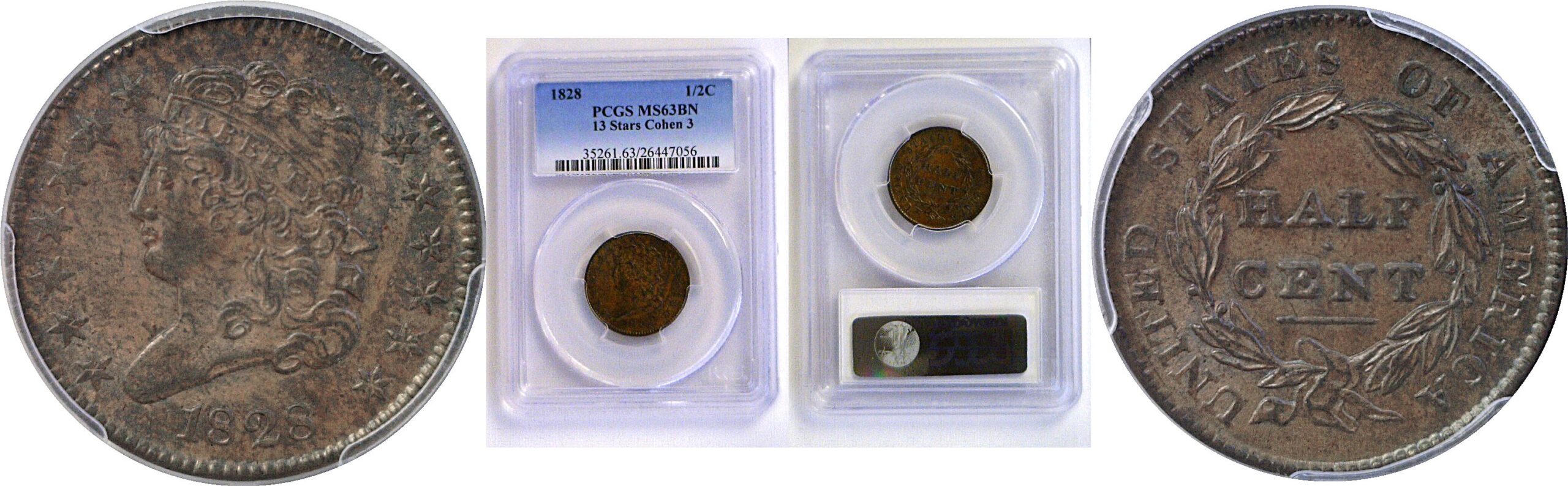 13 Stars. C-3. Sharply struck and lustrous with choice original variegated brown surfaces.