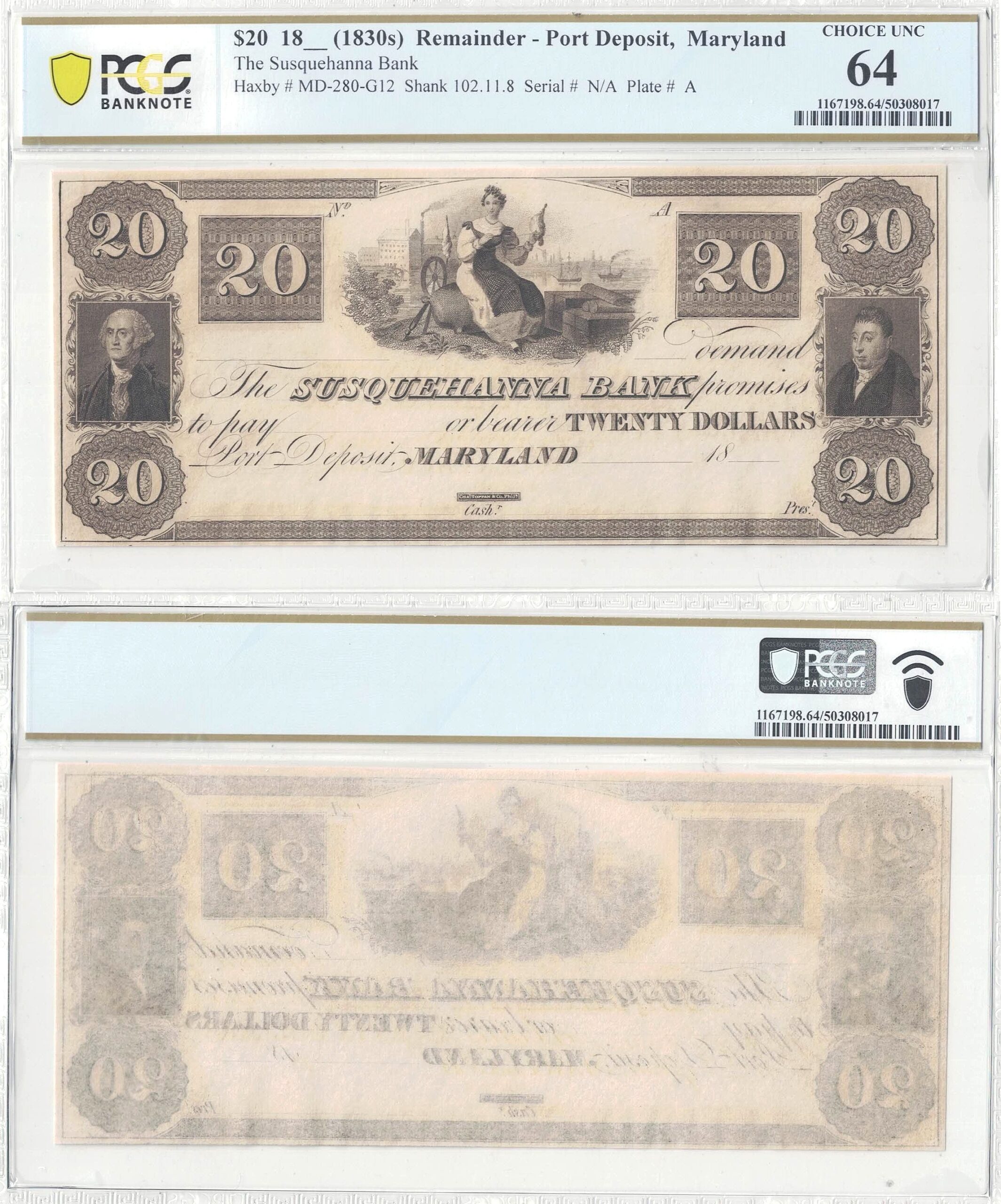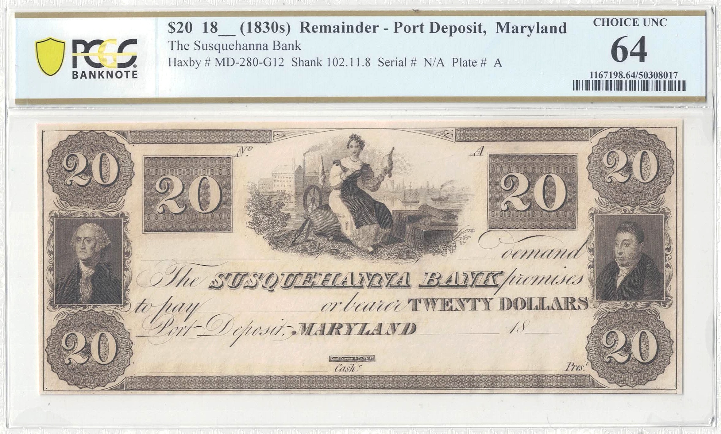 Susquehanna Bank. Port Deposit. MD-280-G12. Shank 102.11.8. Maid seated with spool of yarn.