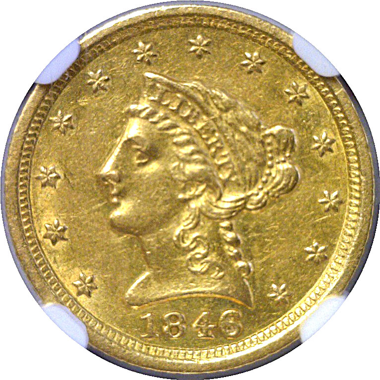 Very attractive with bright lustrous surfaces and sharp detail with almost no sign of ‘rub’. This is an interesting overdate as remnants of the initial D are far to the left of the primary D. Judging by PCGS and NGC population reports, the D/D is nearly ten times rarer than the regular 1846-D yet brings a very modest premium.