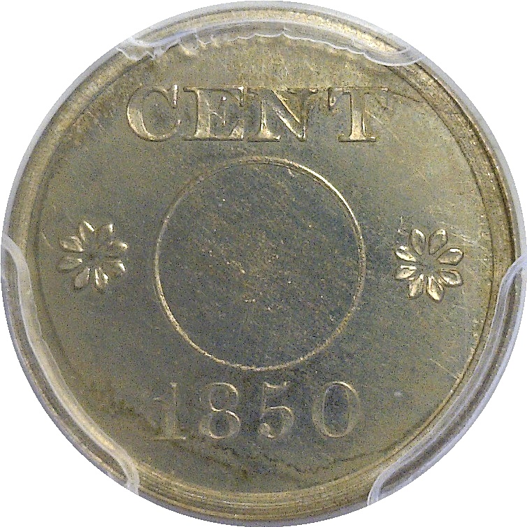 Low R-7. The obverse displays CENT at the top, the date at the bottom, and one star on each side of the center. The center is setup to be a ring planchet but remains unperforated. The reverse is blank except for dentils around the border. Struck in nickel with a plain edge. A light dusting of gold rests upon brilliant surfaces that are nearly mark-free. The single finest graded of this variety at PCGS.