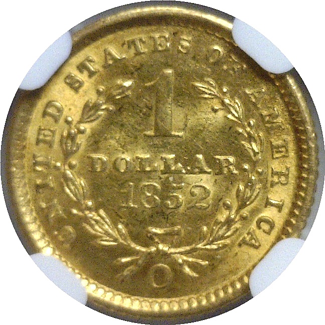 1852-O  One Dollar Gold Coin.  -  NGC MS-64.