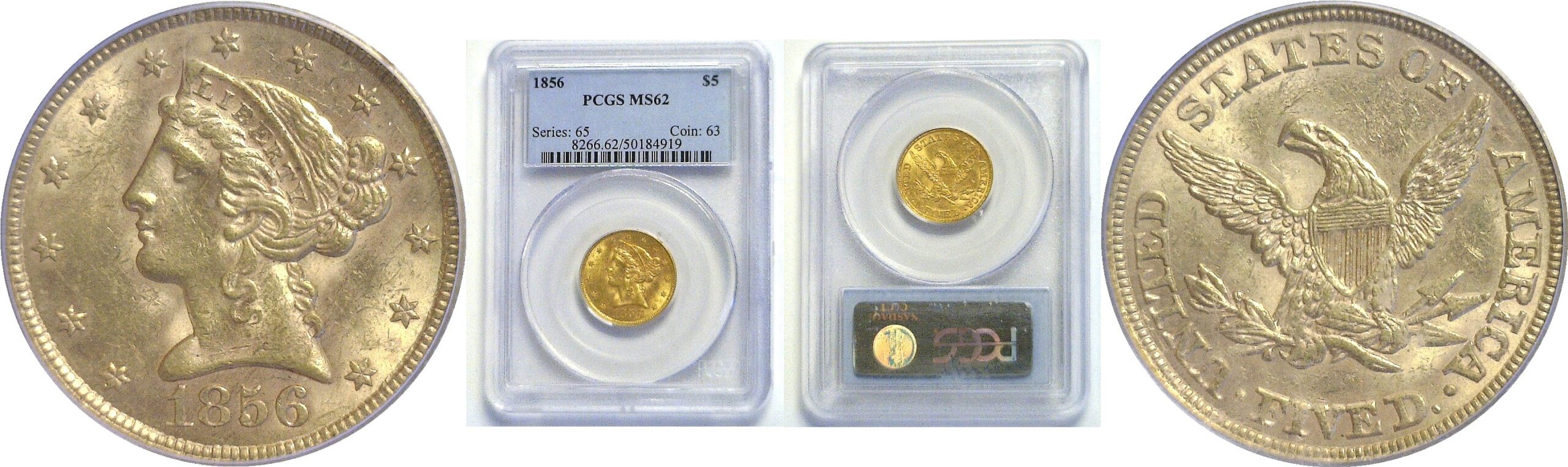 Well struck with lustrous yellow-gold surfaces. Minimally abraded and wonderful for the grade. Pre-Civil War ‘Fives’ are tough in mint state and this date is no exception.