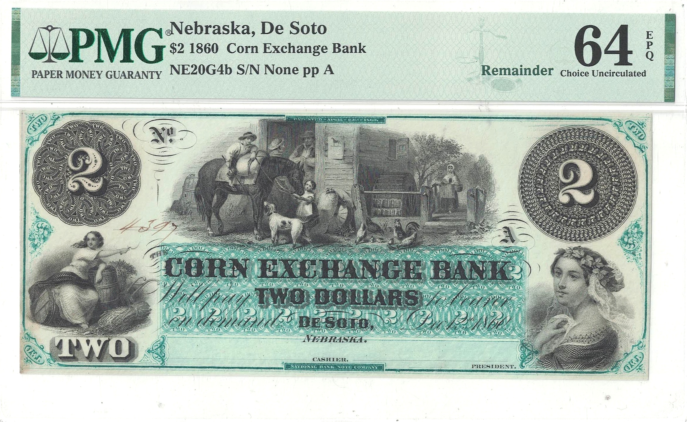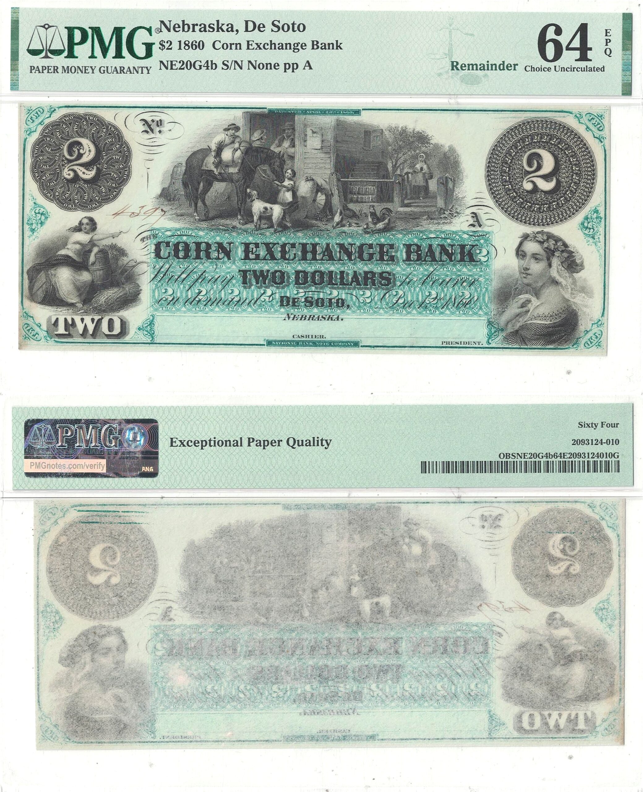 1860 $2 Obsolete De Soto, Nebraska PMG Choice CU-64 EPQ