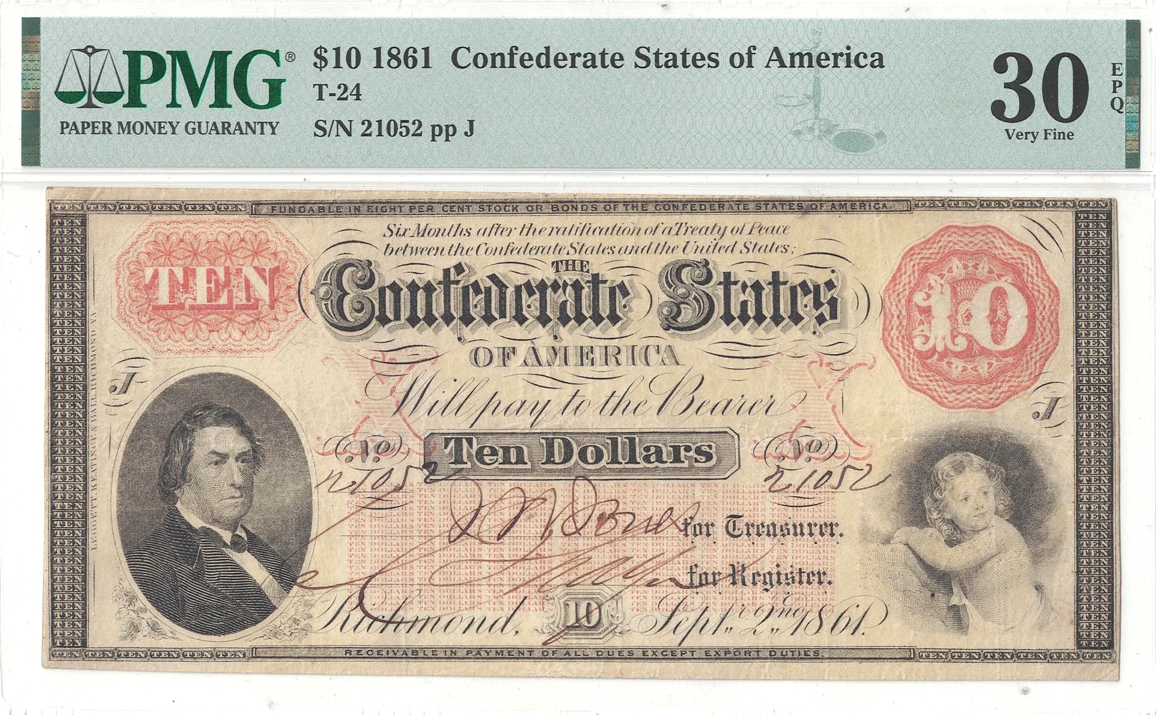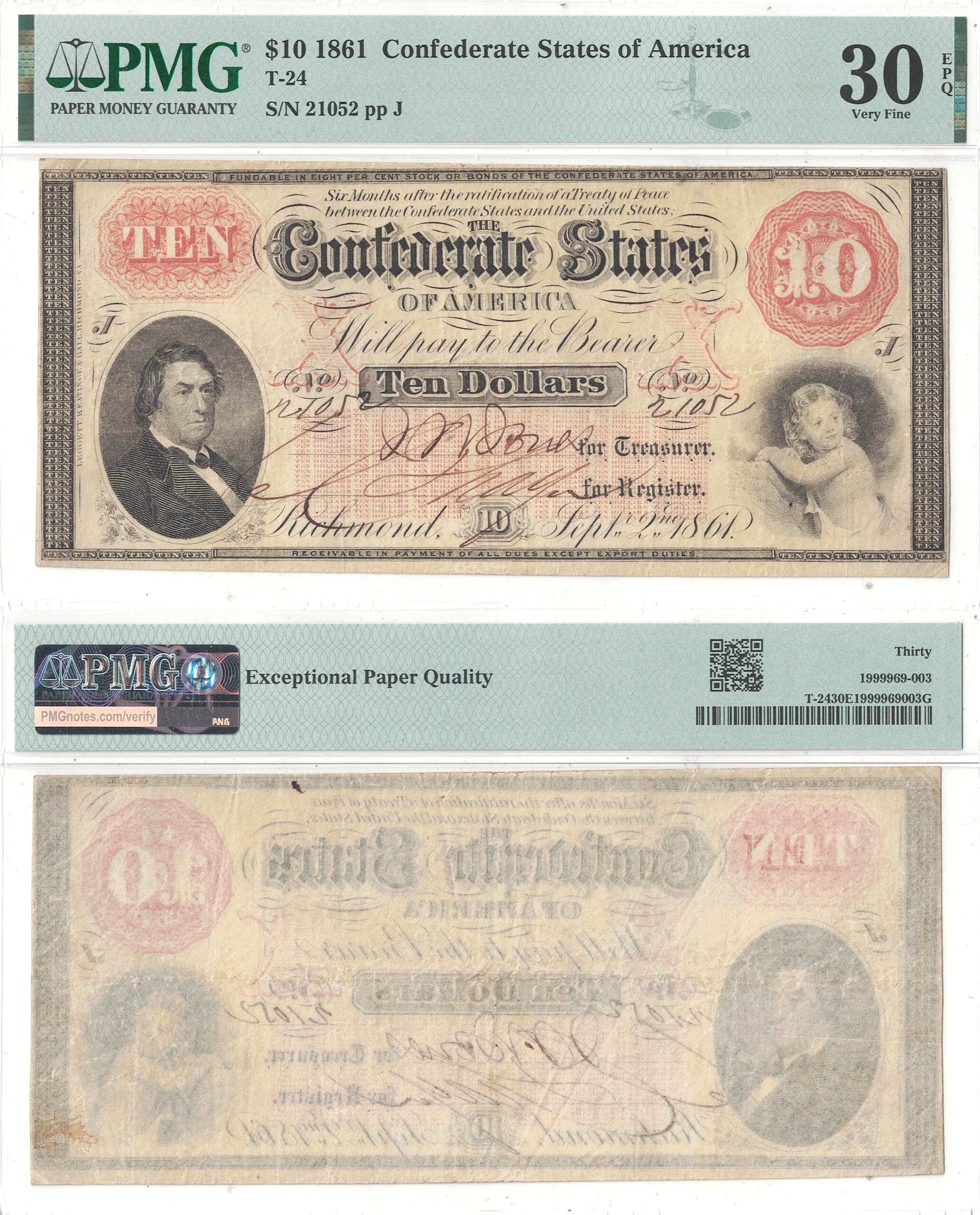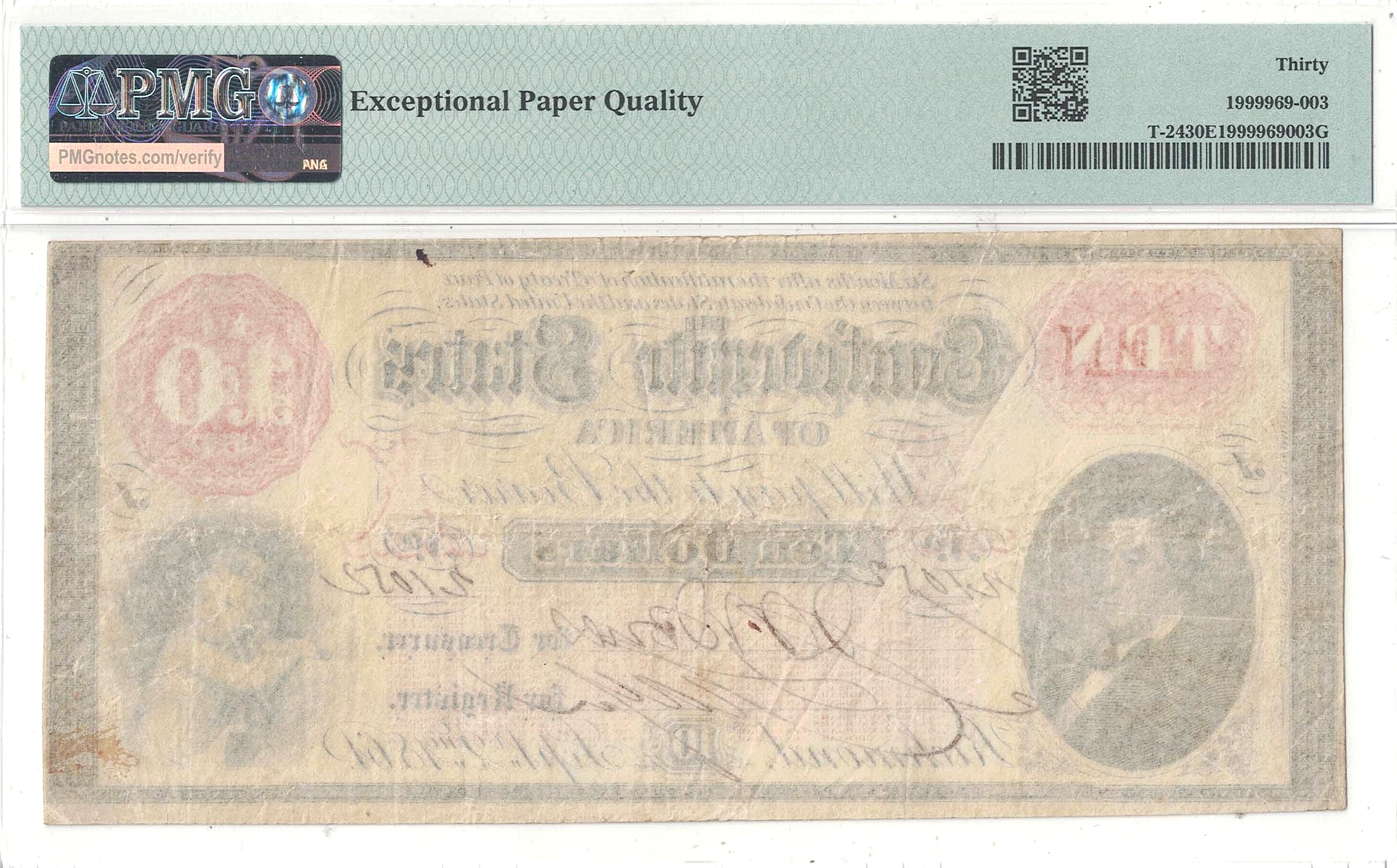 A pleasing note with virtually full margins, original paper, and strong color that includes unoxidized orange ink.