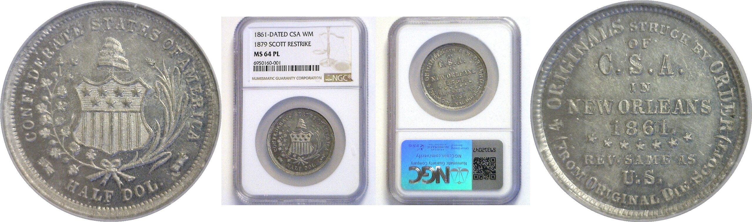 1861 Half Dollar – CSA Scott Restrike – NGC. MS-64. PL
