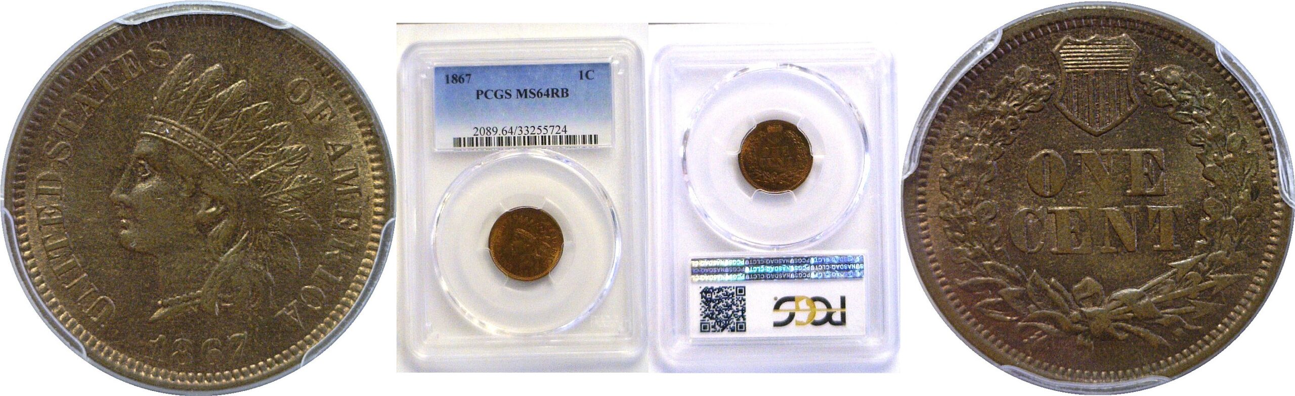 1867 Indian Head Cent – PCGS MS-64 RB