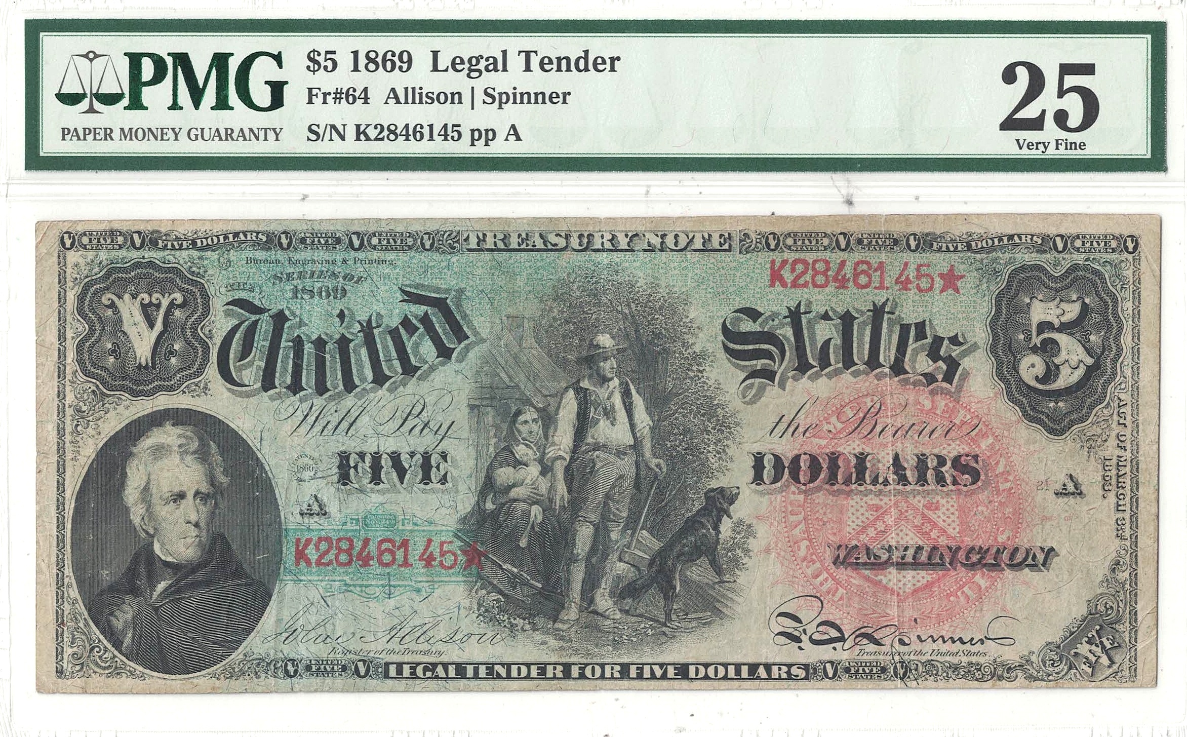 A well centered, and always popular ‘Rainbow’ note. A good variety of colors and moderate even wear are displayed.