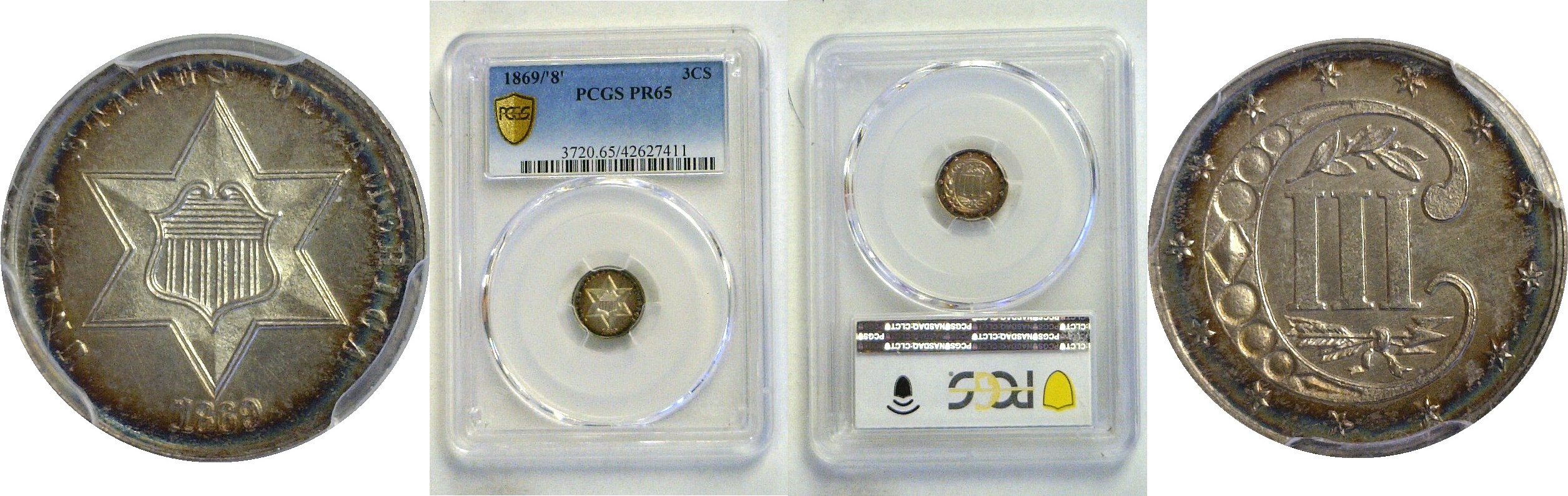 This beauty offers frosty devices with deep, reflective fields, displaying pleasing contrast and a nice original patina. The core in brilliant with a thin ring of iridescent turquoise and russet toning at the rim. A scarce proof with a mintage of just 600.