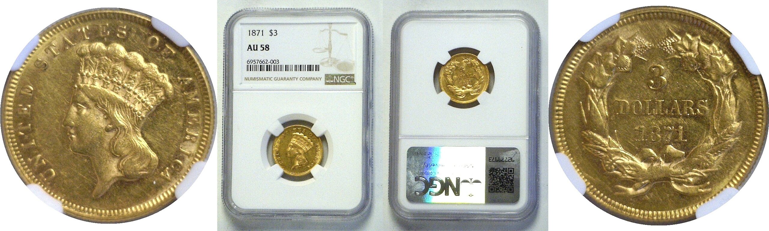 One of the rarest dates in the series with a mintage of just 1,300. This is a very nice example for the grade with virtually full mint luster, few marks, and wonderful yellow-gold surfaces.