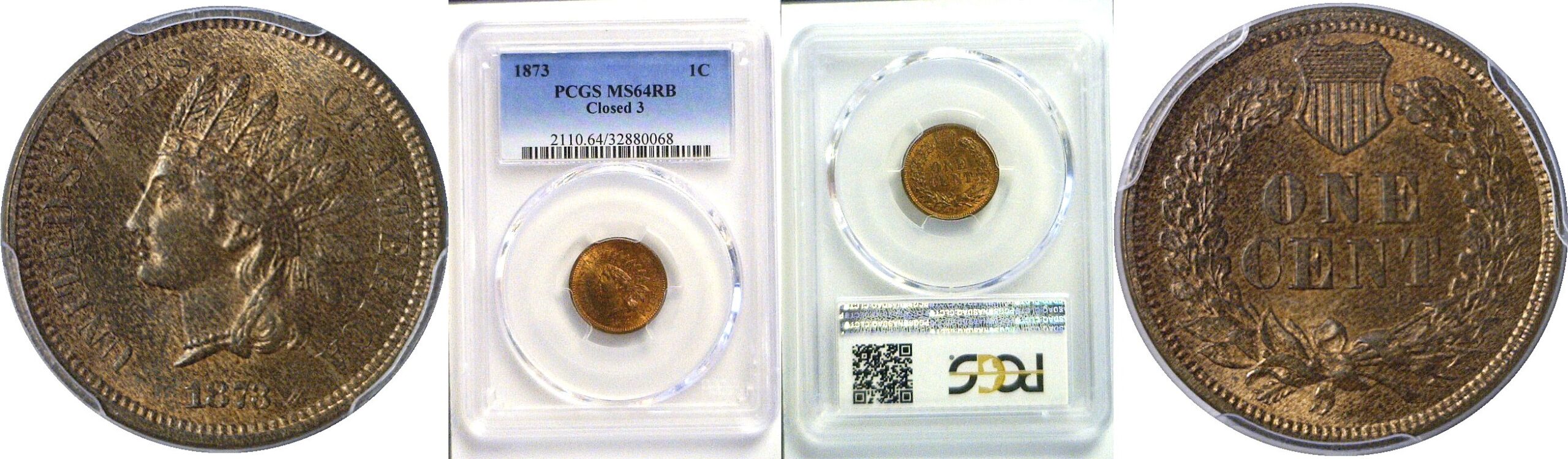 Closed 3. Well struck with a pleasing blend of mint red and light brown.
