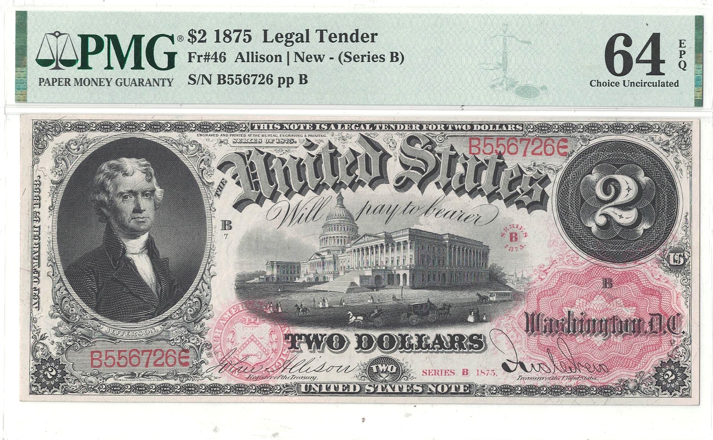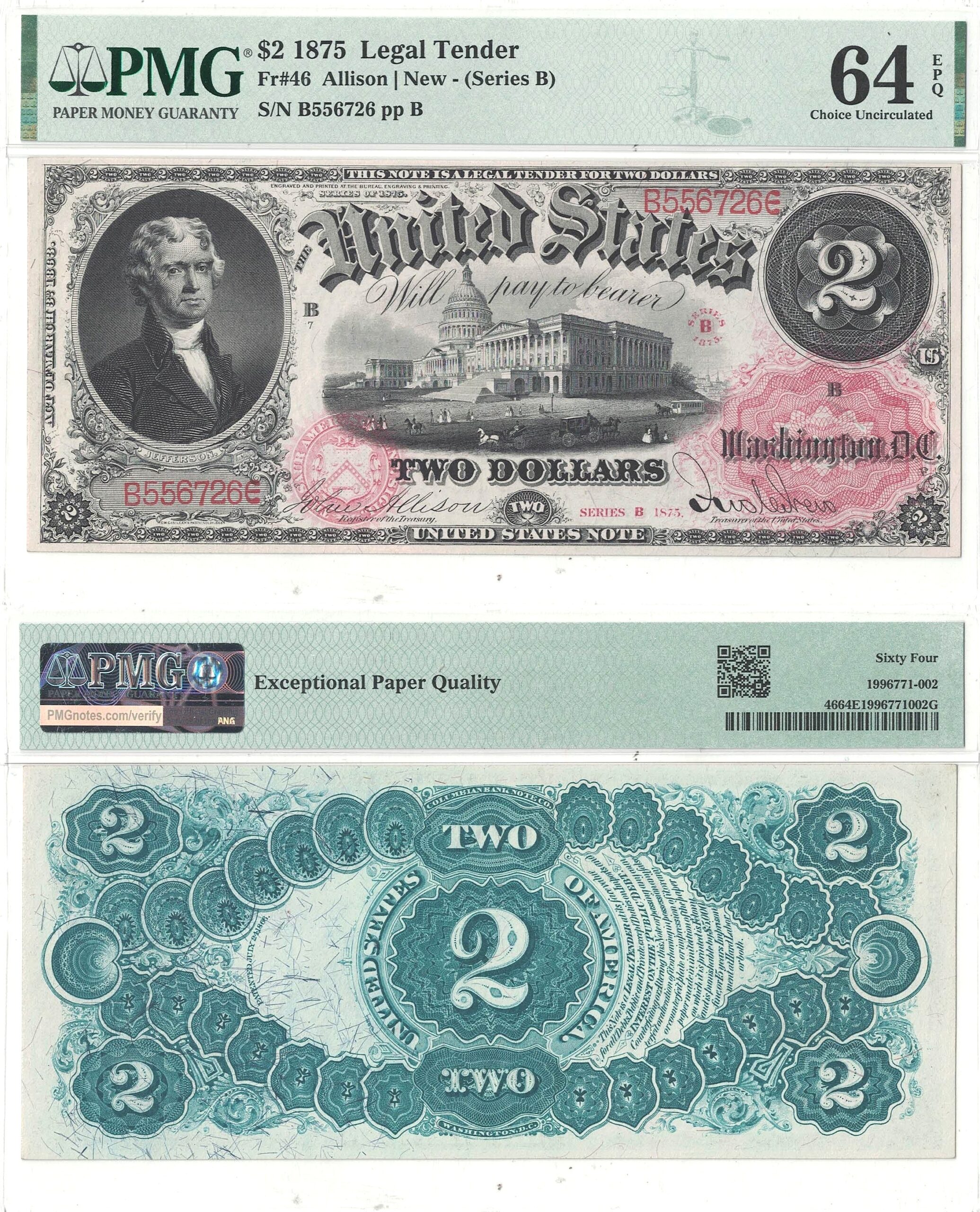 1875 $2 Legal Tender Fr-46 PMG Choice CU-64 EPQ
