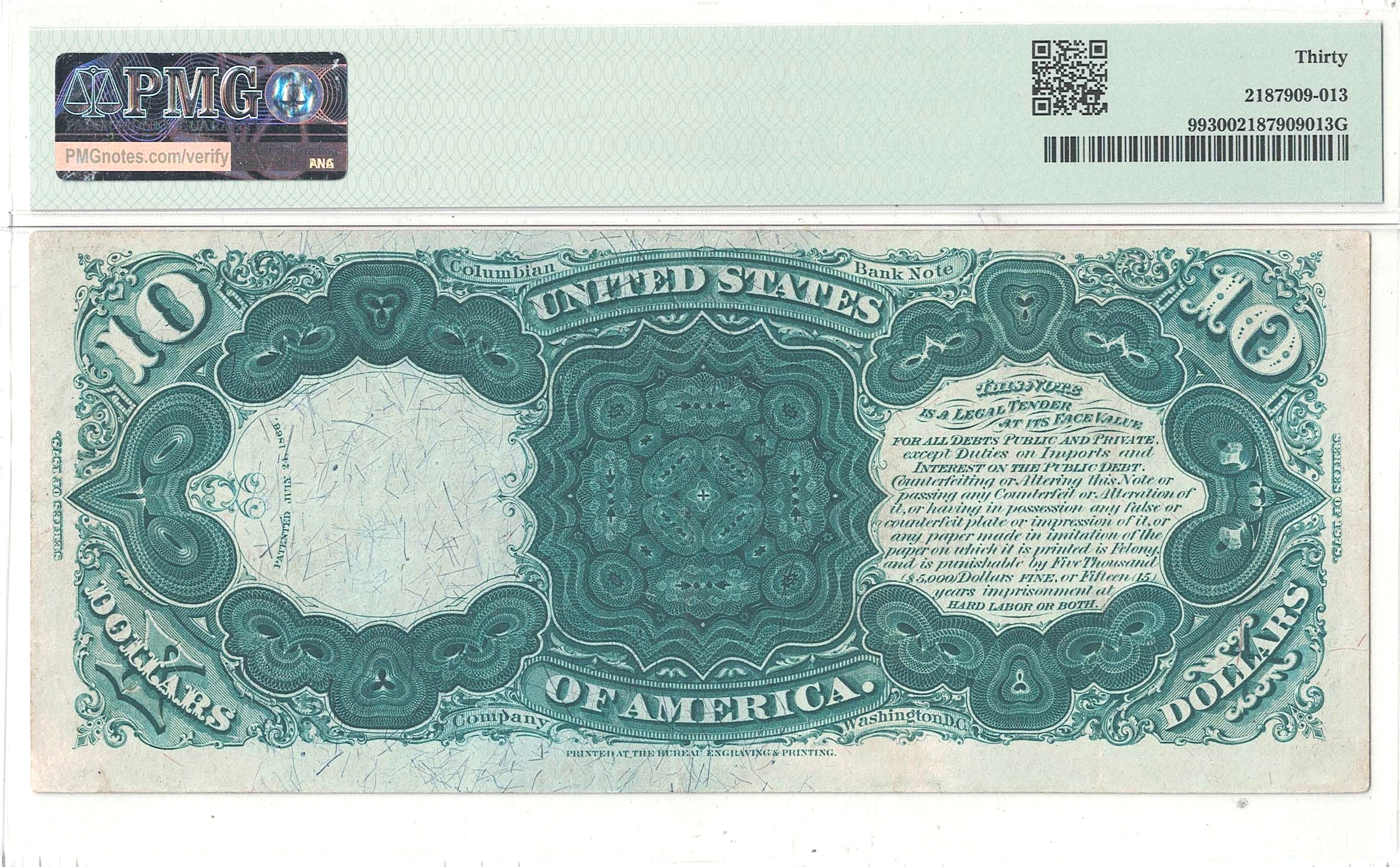 A nicely centered early ‘Jackass’ note with strong color and plenty of remaining brightness.