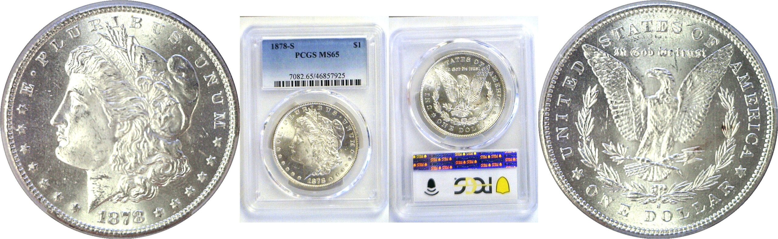 Blast white and sharply struck with nicely frosted design features.