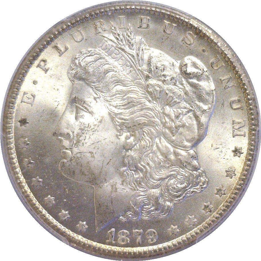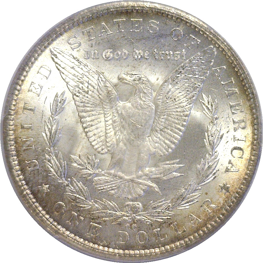 Capped Die. Sharply struck with thick frosty luster. Cream-white surfaces display a little champagne-gold along the periphery. High grade ‘Capped Dies’ are considerably scarcer than the ‘Perfect CC’s’ as the later was heavily represented in the GSA hoard.
