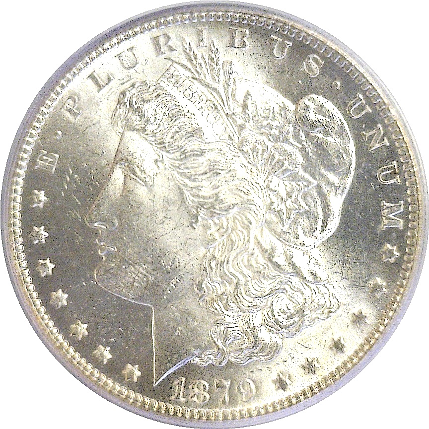 Reverse of 1878. Brilliant white surfaces with subtle touches of gold on the reverse. The luster is strong and the strike is razor-sharp. An attractive example and very desirable.