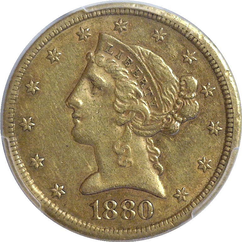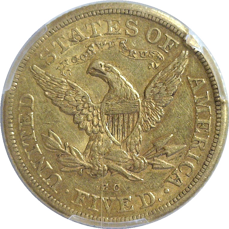 A scarce Carson City ‘Five’ that we seldom see in the marketplace in any grade. This example is well struck and attractive with lustrous and original yellow-gold surfaces. Only 51,017 minted.