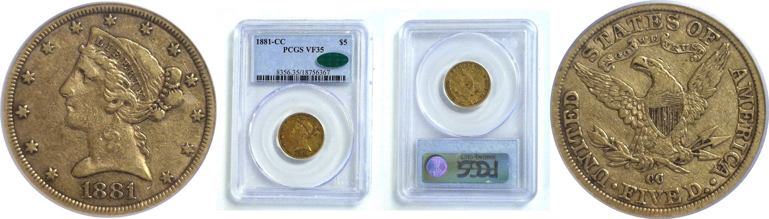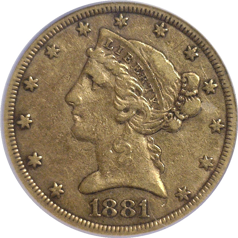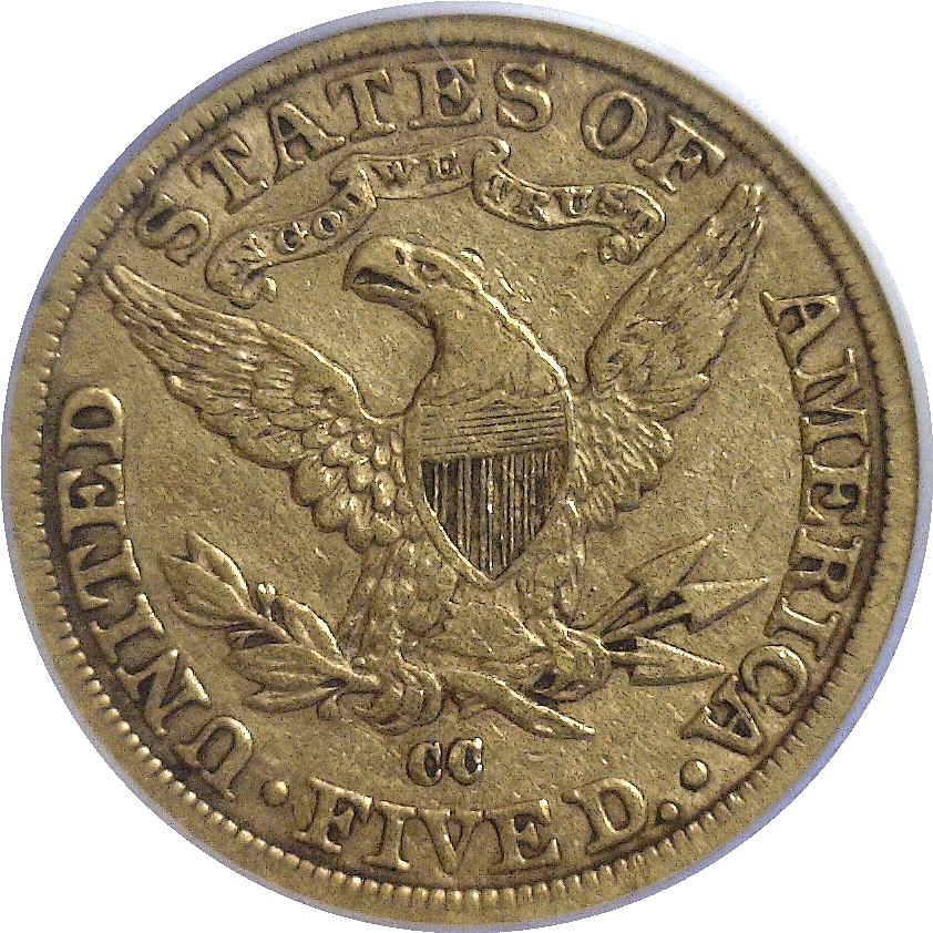 Very attractive with strong detail and very choice original surfaces. Rare in any grade with a mintage of 13,886. Akers called this by far the rarest Carson City ‘Five’ minted after 1878 and in the same class as the 1871 to 1877 issue.