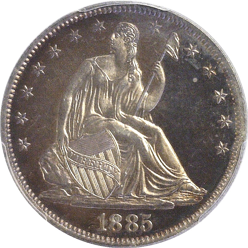 Exquisite iridescent copper-gold toning on highly reflective fields that contrast with heavily frosted champagne-white design elements. Incredible quality and eye appeal!