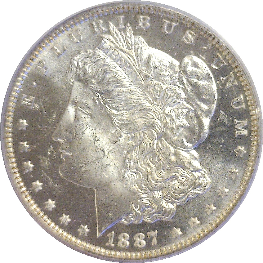 Sharply struck design features with thick white frost are surrounded by deeply mirrored fields and produce a stunning ‘cameo’. While the issue was produced in large quantity, exceptionally nice deep-mirror pieces are extremely elusive and desirable. Housed in an old green label holder.