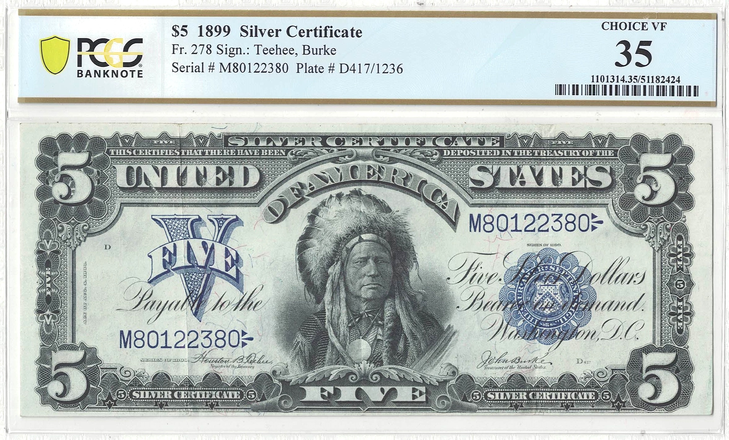 Well centered with vibrant color and bright original paper. Only typical wallet folds prevent a higher grade. A classic note with plenty of eye appeal.