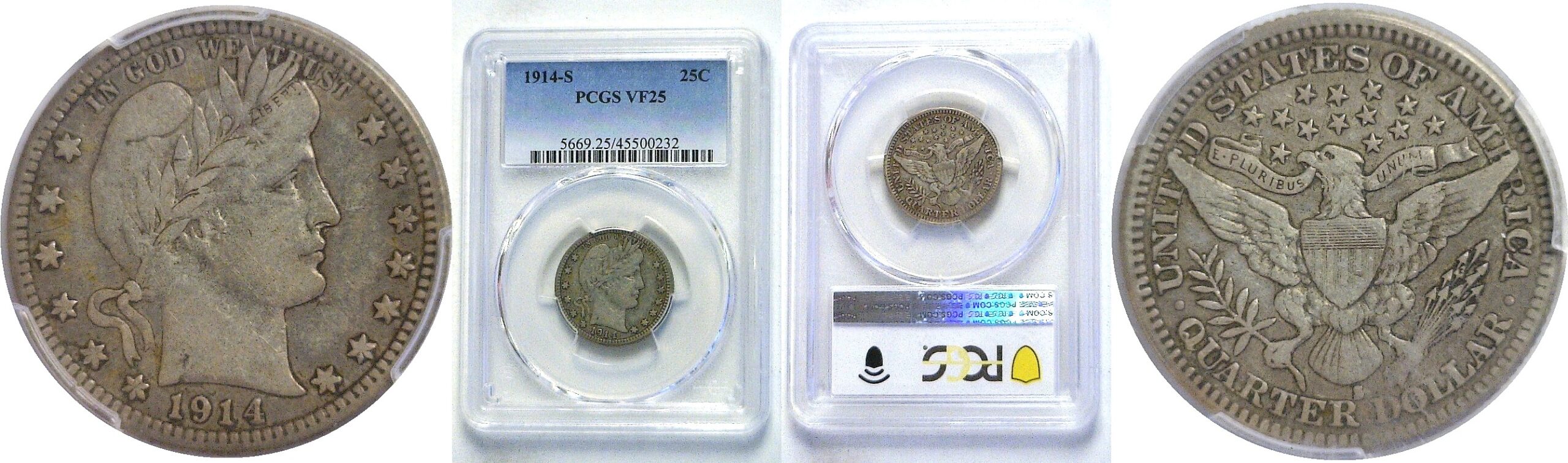 1914-S  Barber Quarter.  -  PCGS VF-25.