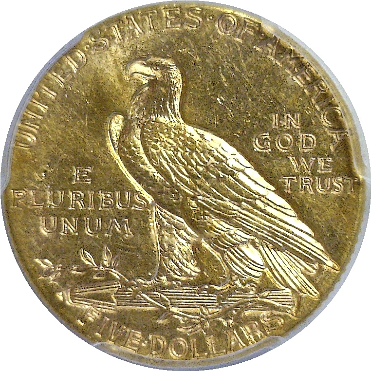 Bright flashy luster and well struck. One of the scarcest $5 Indians in mint state with a modest mintage of 164,000.
