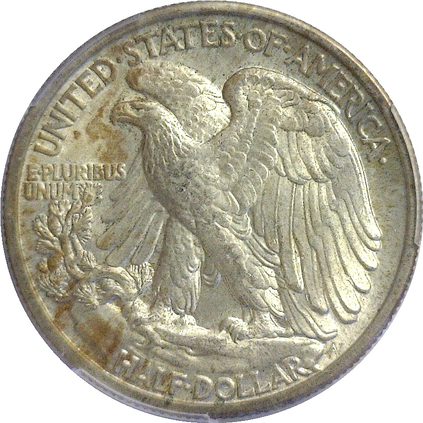 Sharply struck with strong underlying luster and silver-gray surfaces with a splash of gold toning.