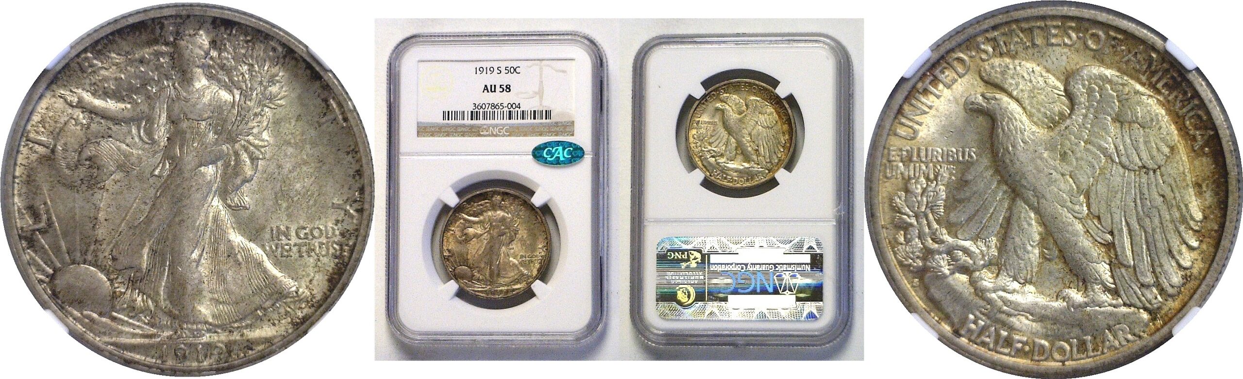 1919-S Walking Liberty Half Dollar. – NGC AU-58 CAC