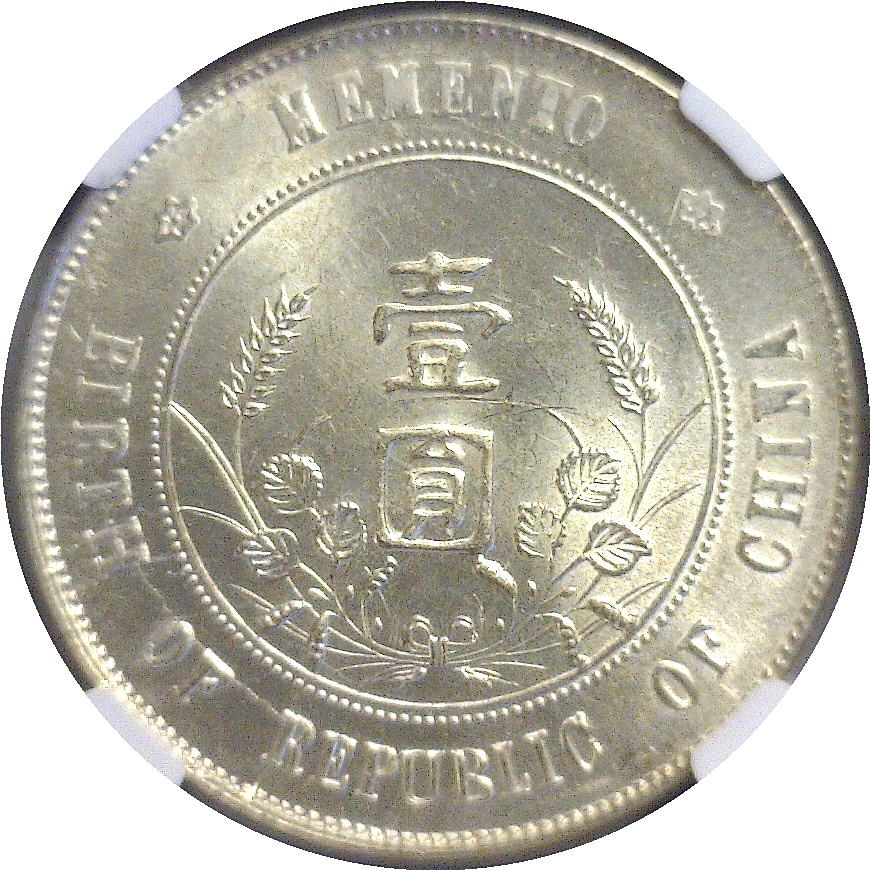 L & M-49, Y# 318a.1, Sun Yat-sen Memento Dollar, 6 Pointed Stars.