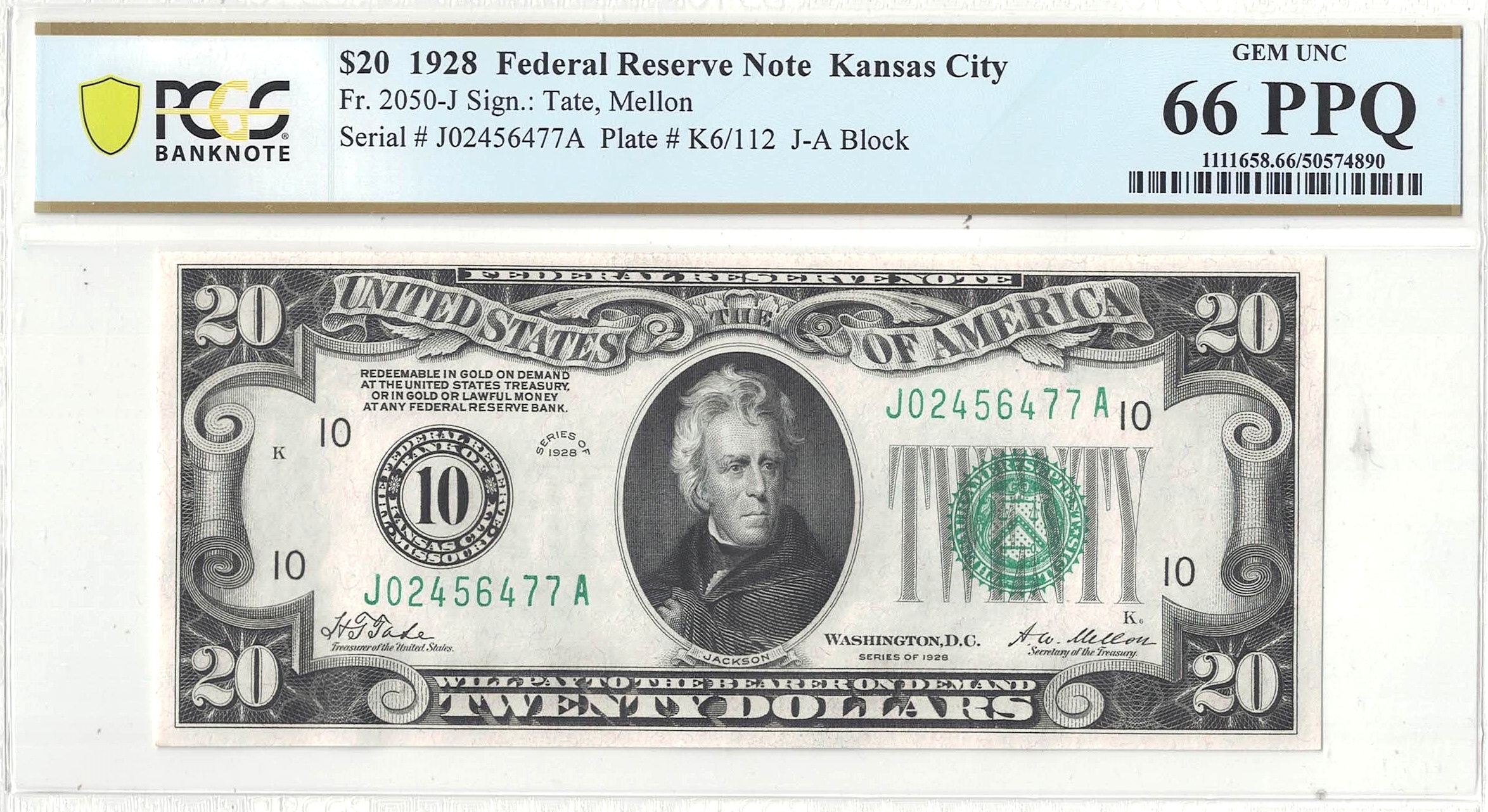 Kansas City District. A high end ‘Gem’ ‘Gold on Demand’ note that exhibits well balanced wide margins, bold inks, and premium white paper.