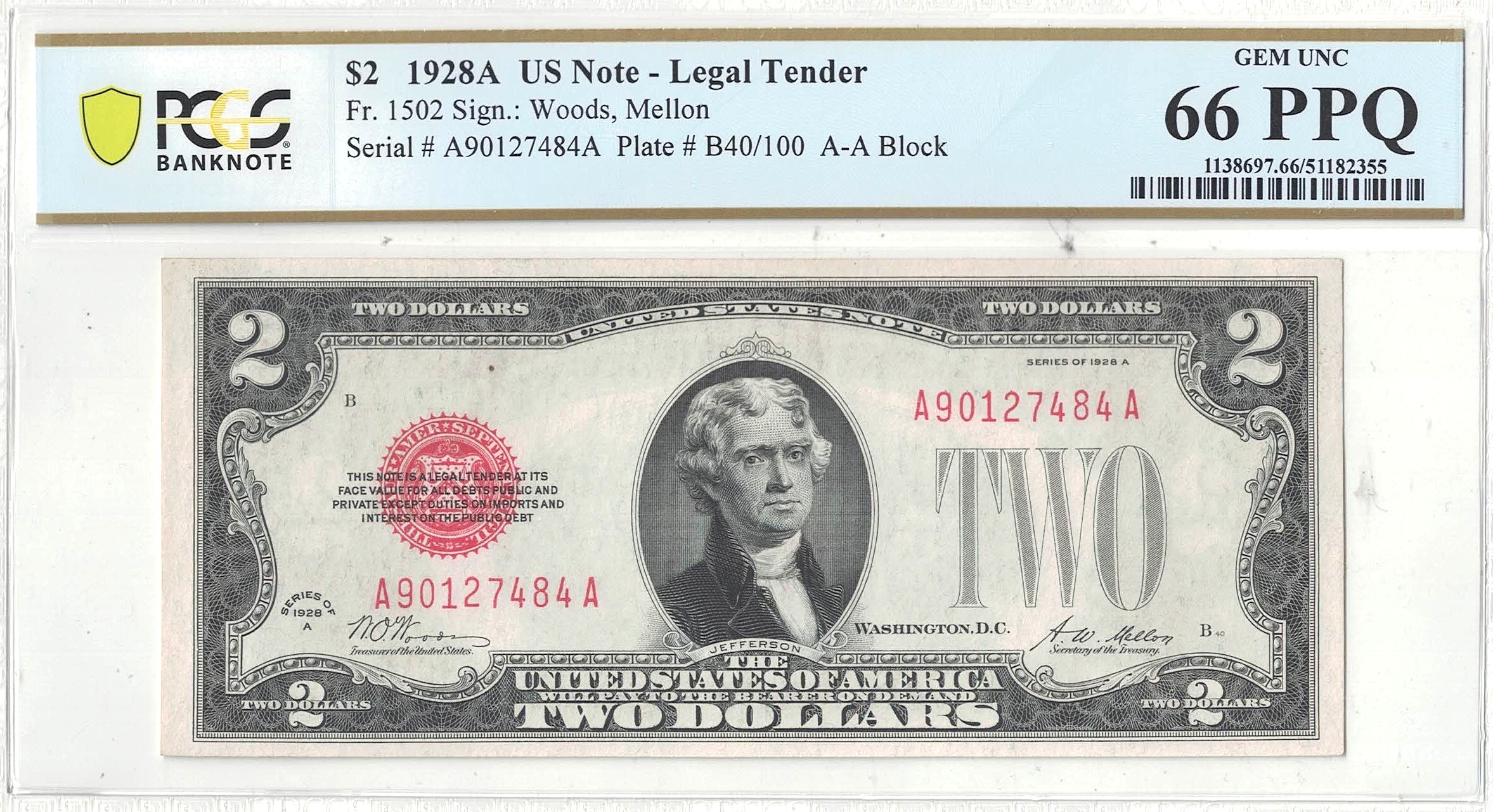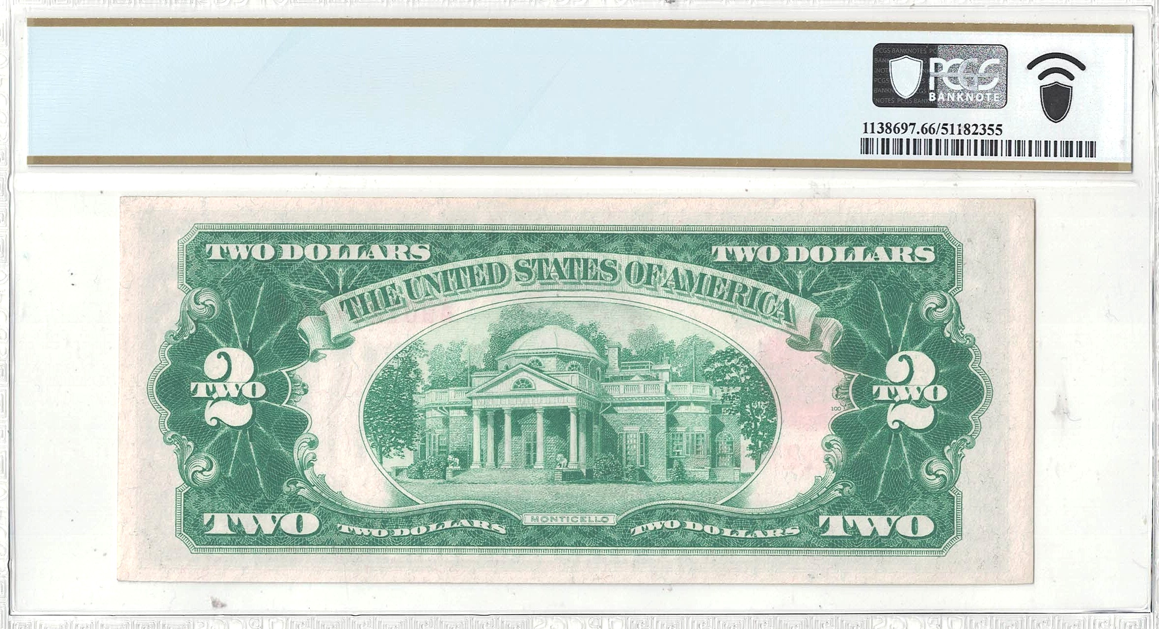 Nearly even borders surround vibrant inks. The premium paper is bright and original. Only 2 notes are at this grade level at PCGS Banknote with none finer. A single note grades finer at PMG.