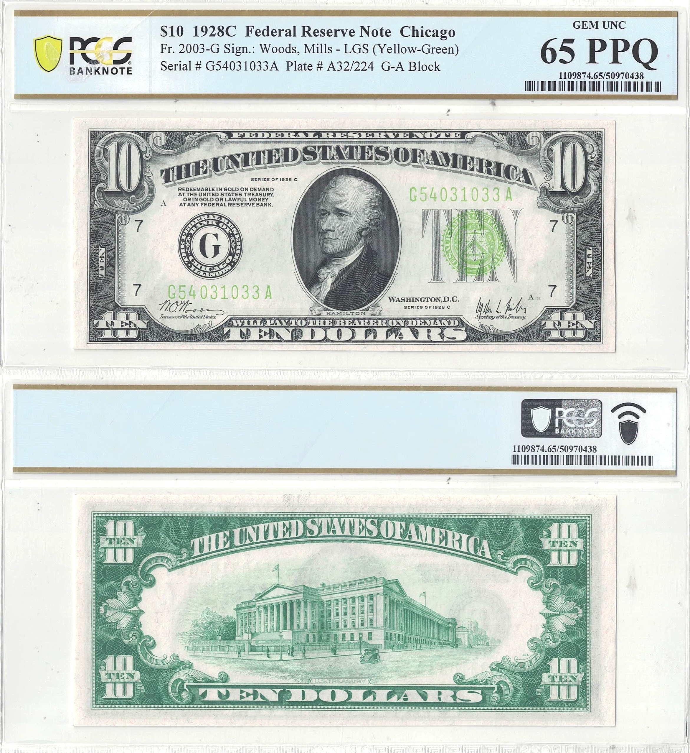 Chicago District. Light Green Seal. A premium note with well balanced margins and a bright appearance.