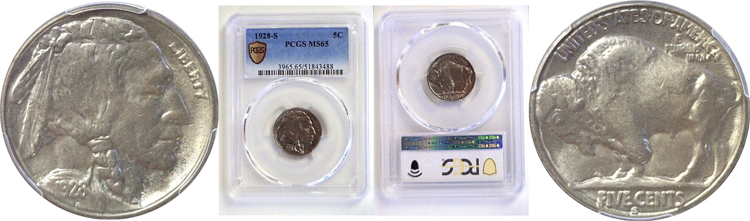Vibrant brilliant luster with faint pastel rose and blue hues. The strike is average for the issue with some softness on the perimeter details.