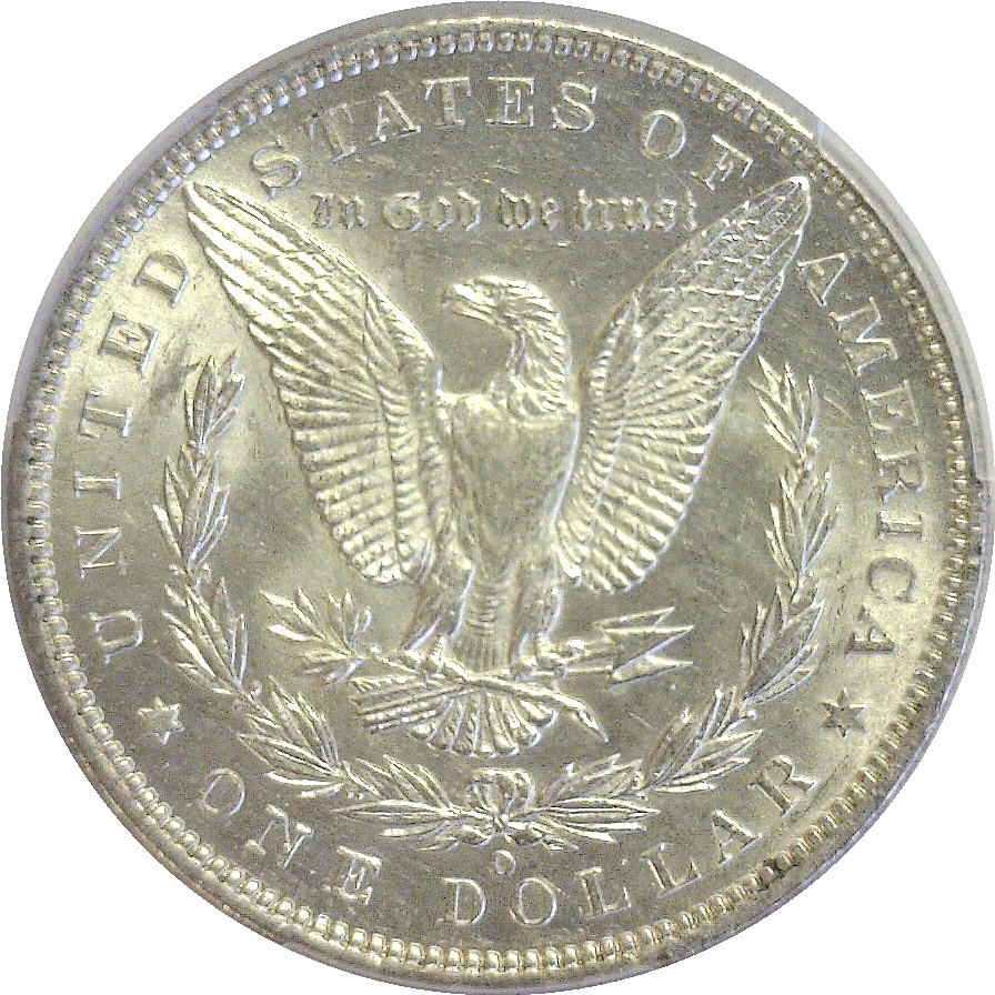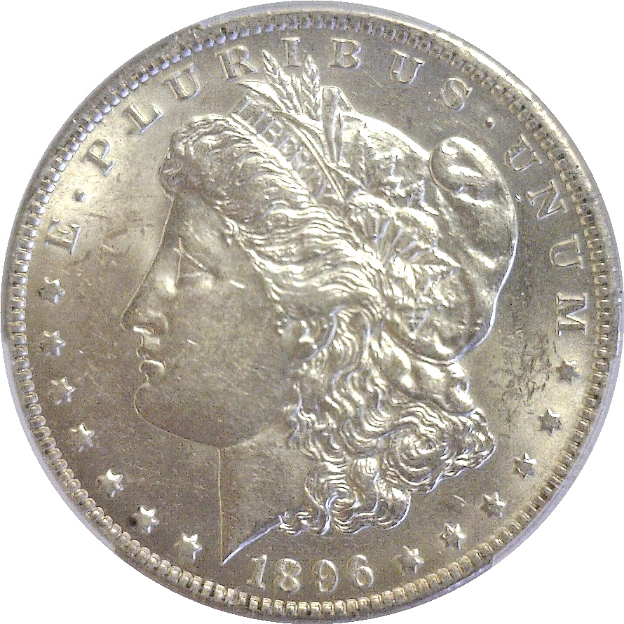 Satiny white luster and a sharp strike with full skirt lines, strong head detail, and left thumb separation.