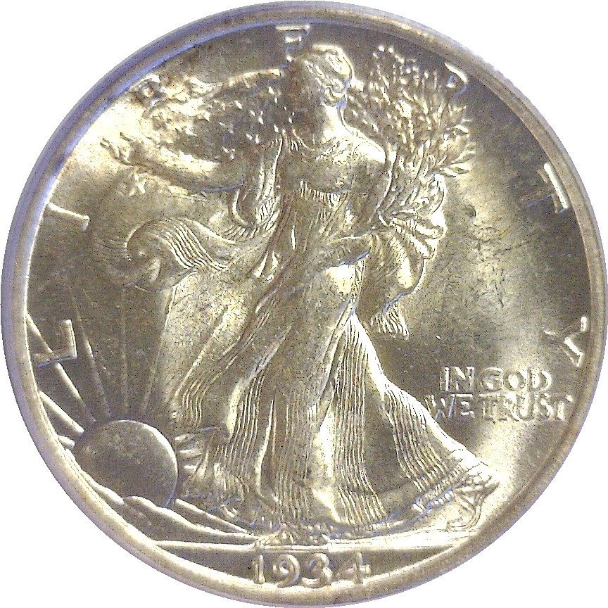 Flashy white luster and a sharp strike with full skirt lines, strong head detail, and thumb separation. The reverse is equally well struck and both sides have just minor marks as expected for the grade.