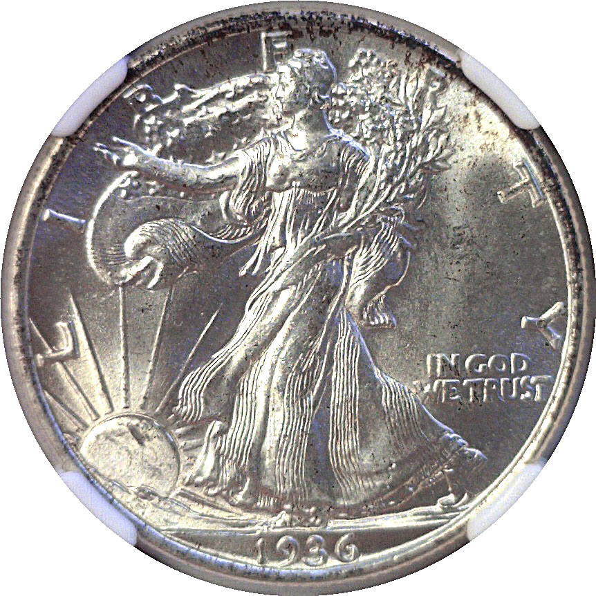 Sharply struck with flashy white luster.