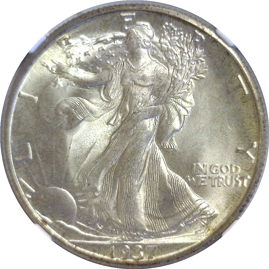 Sharply struck with rich satiny luster over beautiful clean surfaces that have a faint golden hue.