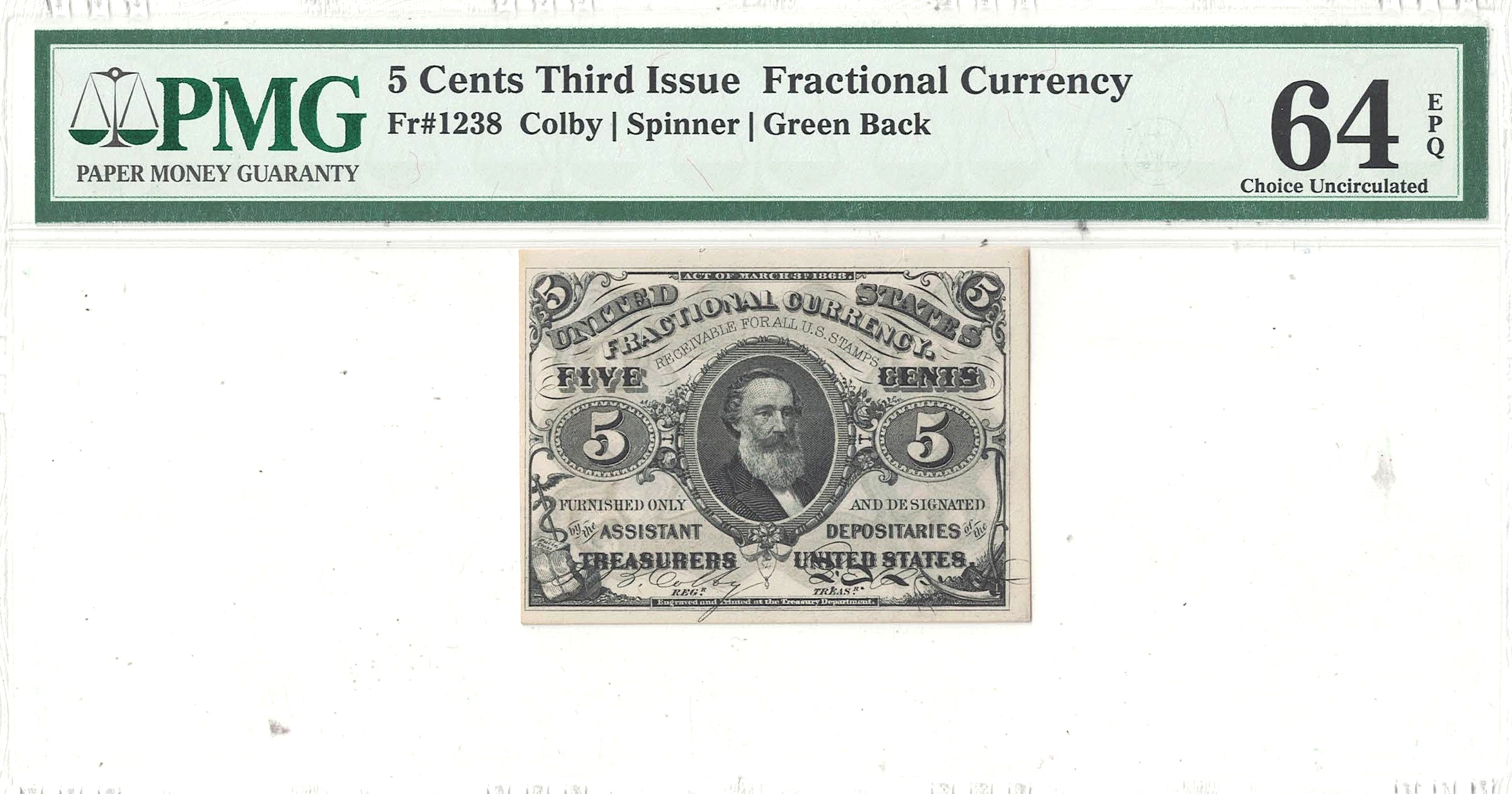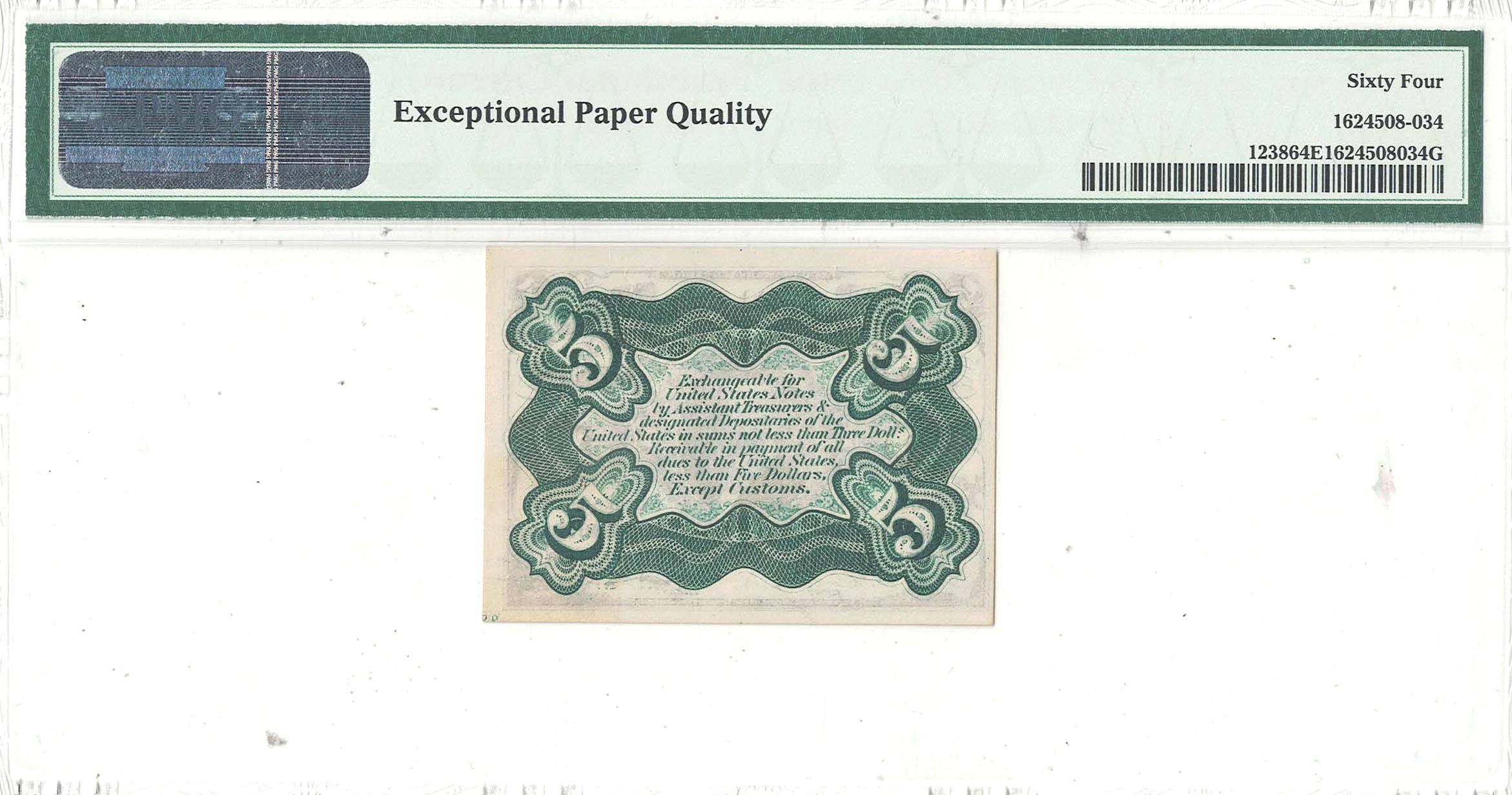 Green Back. Ample borders with sharp corners surrounding strong inks.