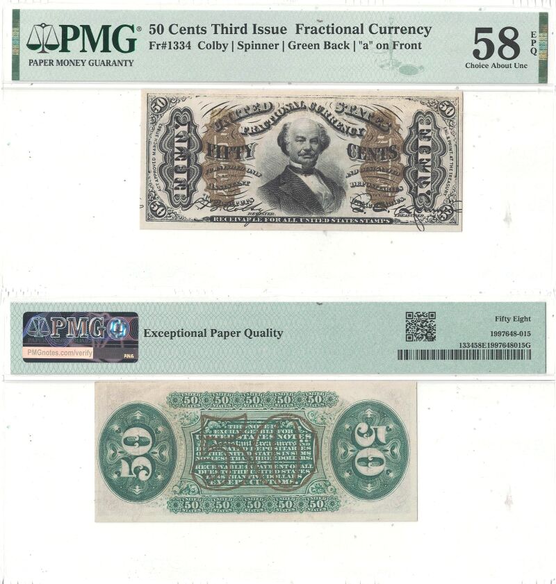 Green Back. “a” on Front. A premium note that displays strong color and bronzing. The paper is bright and margins are full.